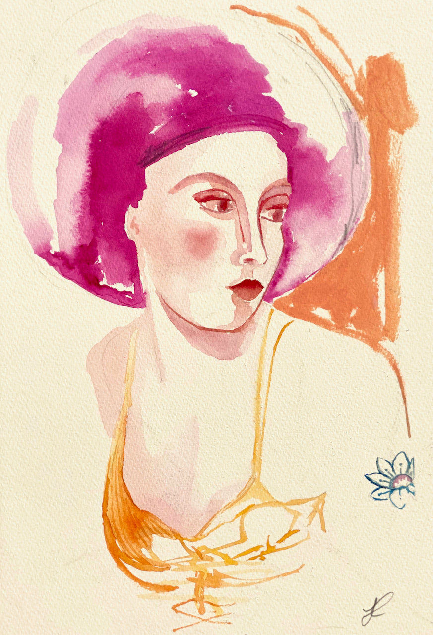 Description: A study in watercolour of an imagined young woman and inspired by the beautiful portraits of Modigliani.