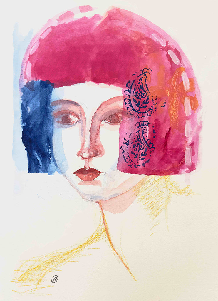 A study in watercolour of an imagined young woman and inspired by the beautiful portraits of Modigliani.