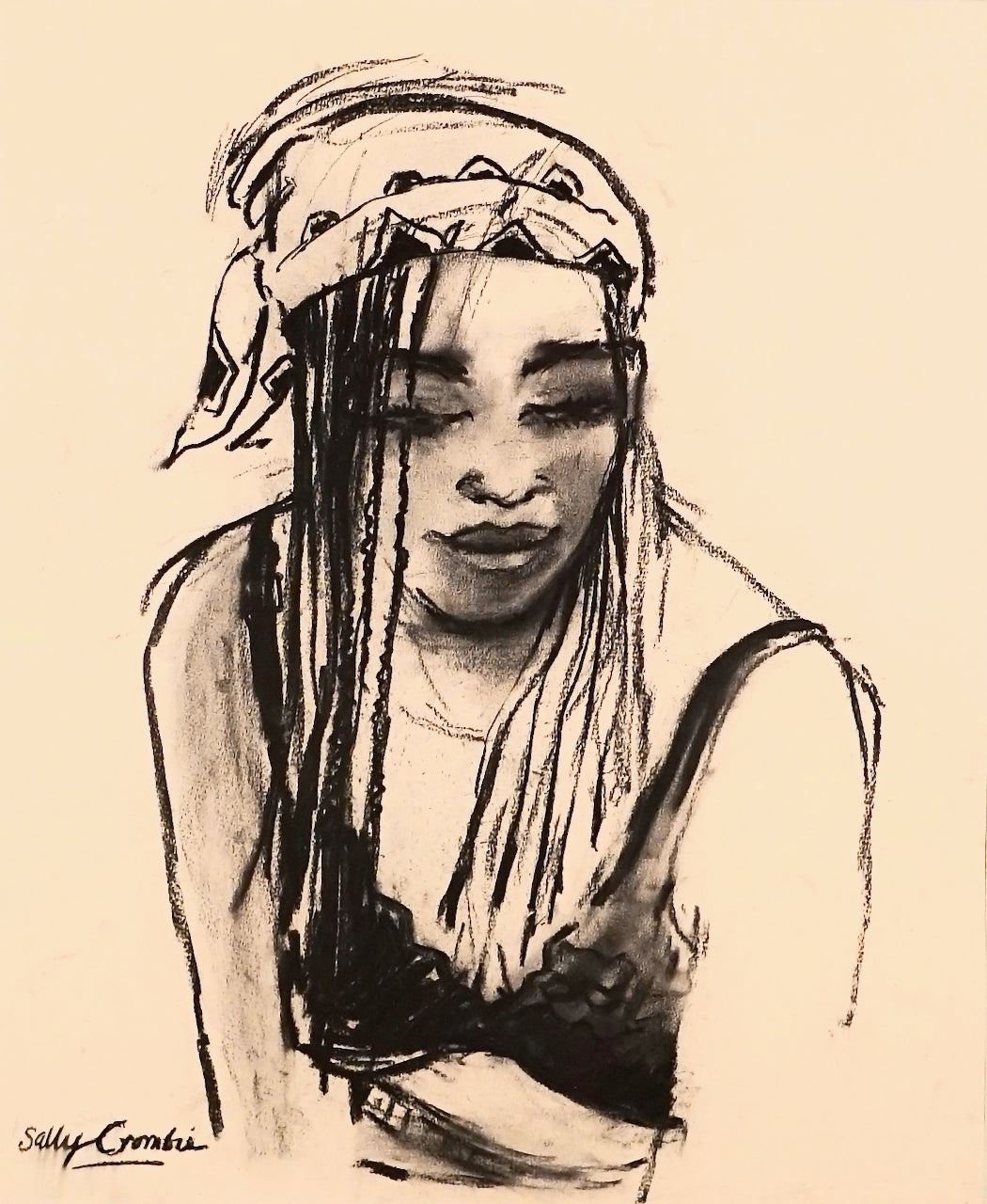 Description: This portrait captures the sitter just being herself and unfazed at being drawn. I wanted to capture the strength and resilience of the African women I have met. Charcoal was the best medium to communicate this. I am inspired by the powerful mark-making in the drawings of Kathe Kolwitz.